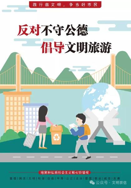 文明是旅游出行最美的风景。想要做一个文明的旅游者,其实也不难:不随地吐痰、不乱扔垃圾、在博物馆和剧场不大声喧哗;在不文明现象面前挺身而出、直言相劝,当好文明的维护者;在旅行之前多做一点功课,了解不同地方的风俗禁忌……从点滴出发,做一个文明旅游的践行者和传播者。