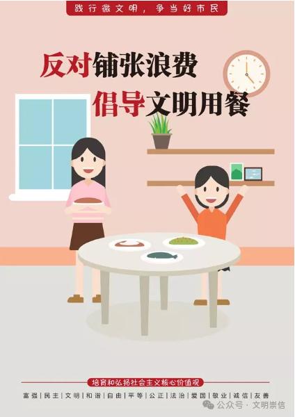 小餐桌,大文明。餐桌文明是社会文明的重要体现,传承着中华民族的优秀文化和尊重劳动、珍惜粮食、勤俭节约的传统美德。粒米虽小君莫扔,勤俭节约留美名。光盘行动,从我做起。