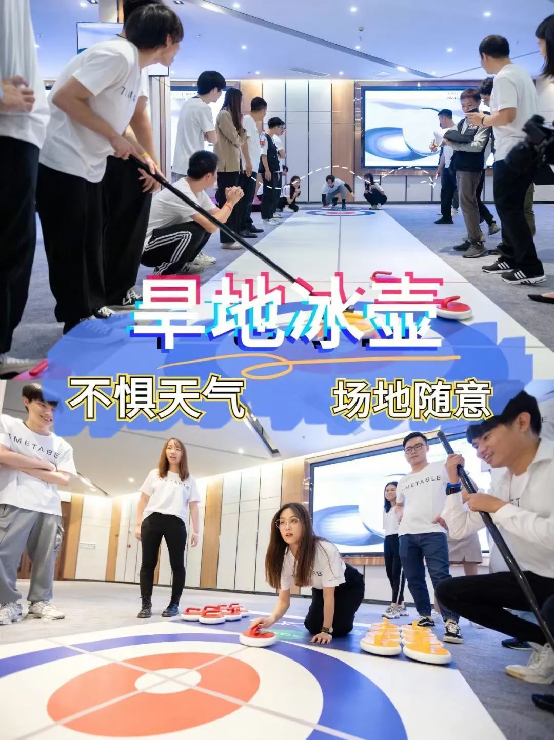 冰壶,是一个充满摩擦和尖叫的最新团建活动。旱地冰壶(Floor Curling),又名地壶球,是一种通过团队协作集体力和智力于一身的比赛,是一项需要个人技术与团队战术配合的运动项目。