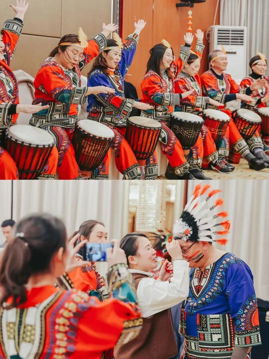 通过非洲鼓不同的敲击节奏,通过部落与部落之间的协调配合,统一默契,最终达成一种完美统一的和谐效果,而这最后和谐的鼓乐,属于完美团队力量的完美体验!