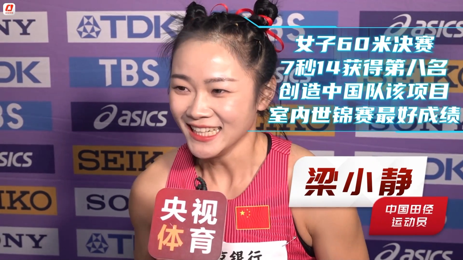 决赛中,梁小静以7秒14的成绩,创造个人最好成绩,排名第八,再次刷新中国队室内世锦赛该项目最好成绩。