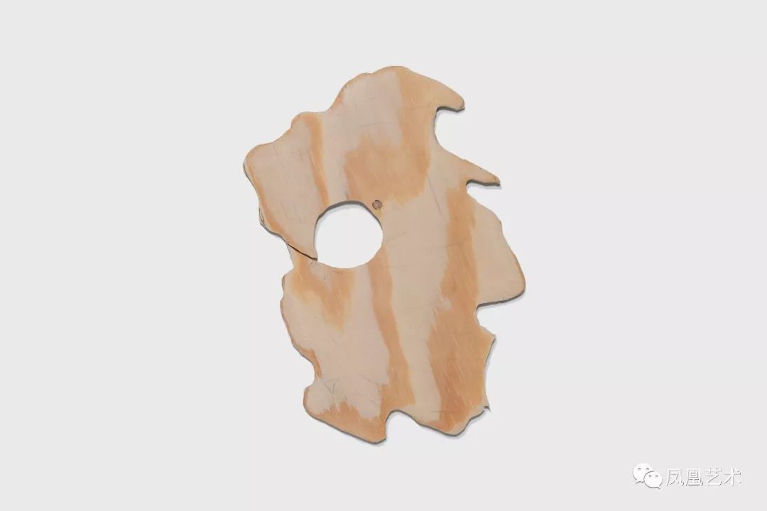 而同场展出的“有色木”则令人忆起艺术家诞生于55年前的早期代表作“构造绘画”,二者均以胶合板为材料构成简洁的形状。但正如新作直率的名字所提示的,相较前作的立体结构及象形图案般的指向性,新作更为朴素而自在,仅以稍适切割、打磨的轻薄木片附着于墙面上,并利用胶合板所特有的平滑表面将周围的光线纳入作品之中。