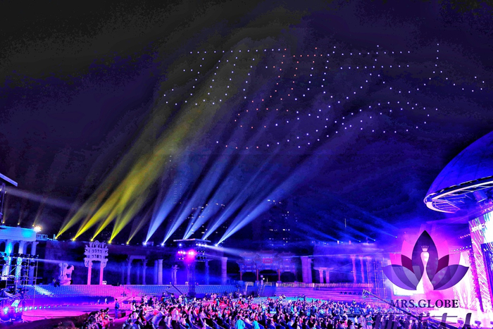 值得一提的是大手笔的开场,200多架无人机腾空而起,在深圳上空编队呈现了环球夫人“美爱同行”、“美孝同行”、“美善同行”和“爱心、智慧、美丽、成就”的宗旨,并且呈现了“你好深圳”、“祖国万岁”,震撼全场,现场的观众心潮澎湃,惊叹声掌声不绝于耳。无人机升空8分钟,八个主题,代表着环球夫人大赛在中国八年的历程。期间,世界之窗还配合进行了烟花表演。一场真正的视觉饕餮盛宴!观众盛赞这是一场国际水准的高规格的赛事。