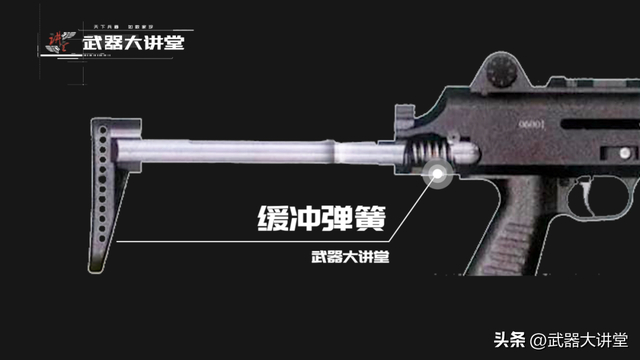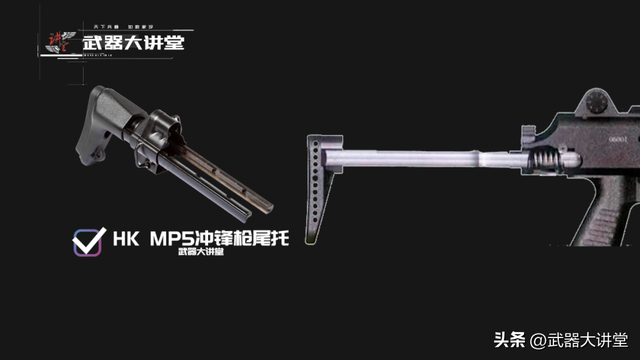 肩托的设计参考了德国HK-MP5冲锋枪的方案,选择三档可调可伸缩式枪托,并在机匣尾部上方设有一个定位卡笋进行位置的固定,这种方案可以满足各种不同使用场景和不同身高使用者的需求,携带隐蔽也比较方便。