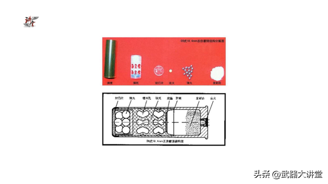 DBD-09 18.4毫米钨合金杀伤人员霰弹是标准的12号霰弹,尺寸是完全通用的,全弹长65mm、重44g,包括钢制的弹壳、铝托杯和低密度聚乙稀注塑成一体的弹托、塑料封口片、底火、发射药和弹丸组成,其中塑料封口片在入膛的时候就直接碎了,方便钨球弹丸从弹托中直接分离。