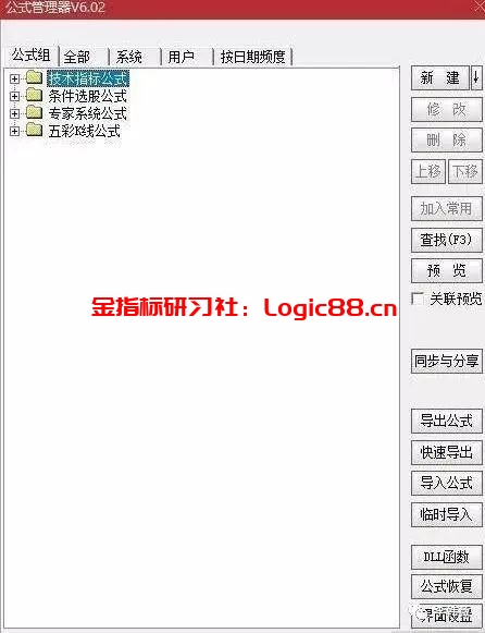 打开通达信软件:功能 —— 公式系统 —— 公式管理器 (或者直接快捷键Ctrl+F),我们可以看出指标公式分为四大类:1:技术指标公式 2:条件选股公式 3:专家系统公式 4:五彩K线公式