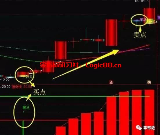 2、副图——黑马预警,我之前说过,短线不代表频繁,做多错多,由于主图出现信号太频繁,因此,我专门给它配了一个副图,这个副图信号出现频率适当,且针对妖股和短期拉升速度快、幅度高的个股有奇效,因此,主图和副图同时使用,可以减轻自己看盘的压力,同时提高信号的准确率。