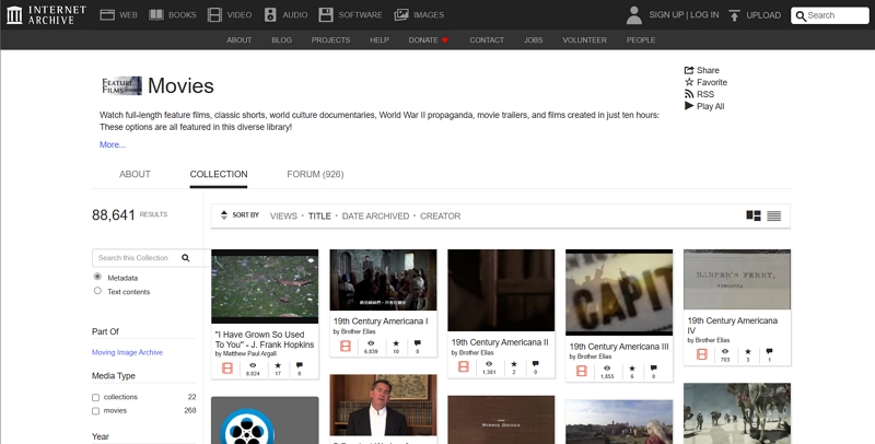 通常,您可以在互联网档案馆中找到不再受版权保护的电影和电视节目。您可以流式传输它们,而不必担心违法。