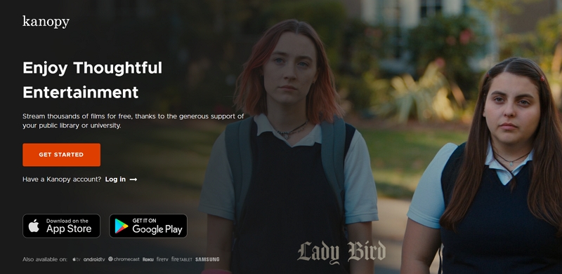 只需使用您的借书卡或大学登录信息创建 Kanopy 帐户,然后使用 Kanopy 服务即可查看内容。 Kanopy 适用于 iOS、Apple TV、Android TV、Chromecast、Roku、Fire TV、Fire Tablet、三星电视等。