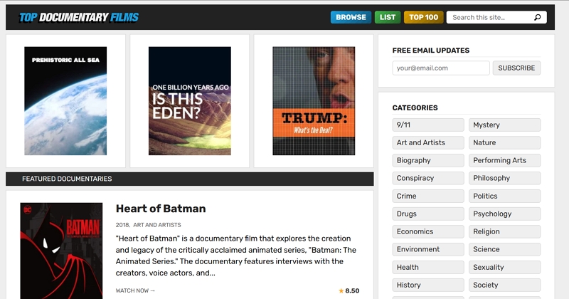 您还可以在热门纪录片电影中找到您可能错过或不知道的精彩纪录片的建议。这是一个很棒的网站,以纪录片和独立电影为特色。您不会找到通常在其他平台上找到的主流电影。