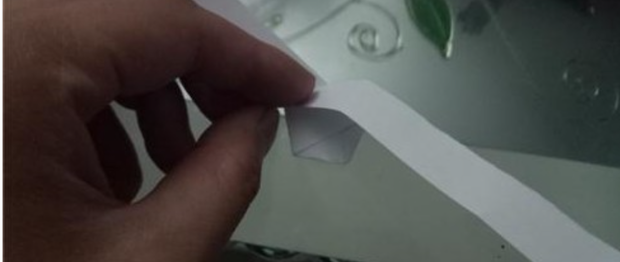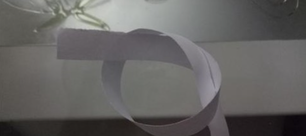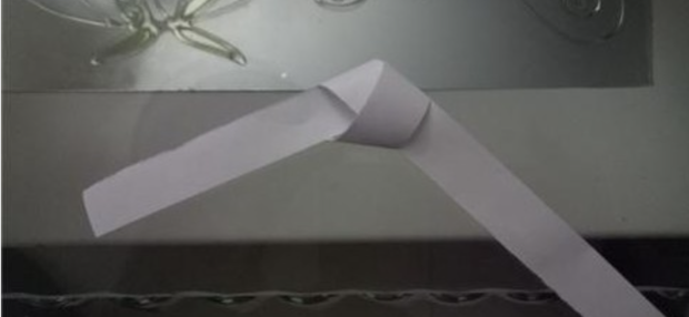 之后将打的结,不断的拉紧,保证纸不会拧麻花,当收紧到缝隙和纸条的宽度一样的时候,将打好的结压平,如图所示。