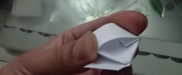 之后需要将纸条打端像中间收缩,一头出入到形成的圈圈中,如图所示。