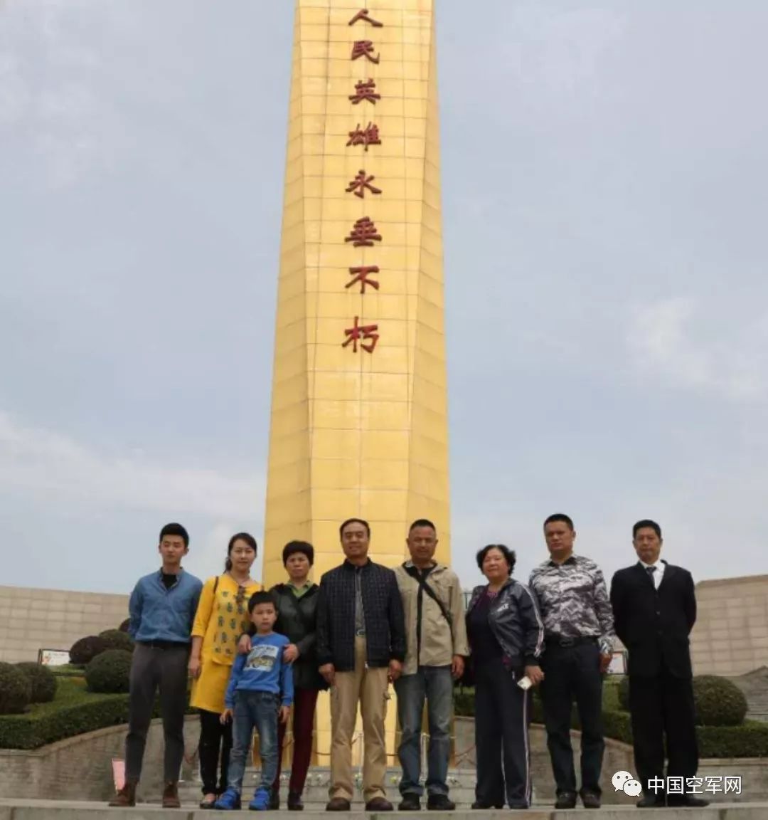 △从左至右罗渝、李弟燕(邱光华烈士妻子)、张连富、陈玉娥、邱峰(邱光华之子)、邱峰妻子。闵忠 摄