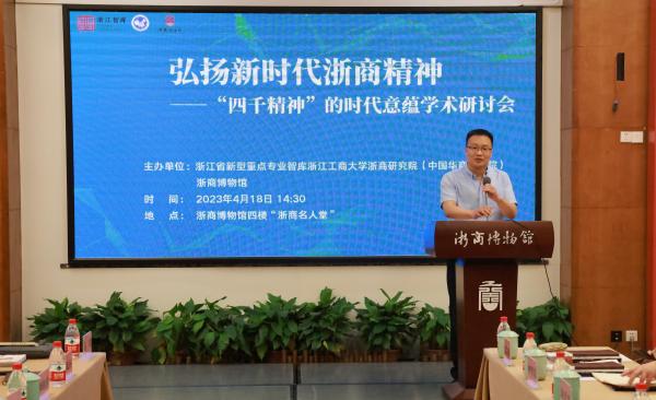 4月18日,浙江省新型重点专业智库浙江工商大学浙商研究院(中国华商研究院)举办“弘扬新时代浙商精神 ——‘四千精神’的时代意蕴学术研讨会”,与会专家学者和民营企业家代表共同探讨如何进一步弘扬新时代浙商精神,以期构建浙江民营经济新优势。