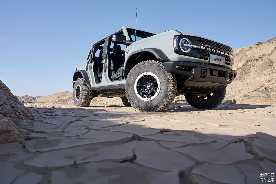 国产福特烈马拥有武装到牙齿的强悍越野配置,原厂即标配固特异35英寸外径泥地胎,尺寸为LT315/70R17,搭配17英寸高亮喷黑铝合金越野防脱轮毂和宽体大轮眉套件,硬派气场不彰自显。在越野性能上,所有大脚越野版本均拥有4.7后桥速比、德纳DANA前/后电控机械差速锁、EMOD智能预加载四驱系统、H.O.S.S.2.0悬挂系统带Bilstein倍适登三段式氮减,可谓“出厂即巅峰”。同时,荒地与大沼泽地版本更是配备智能前防倾杆断开功能,通过提升单侧悬架的自由行程,让车轮最大程度保持与地面接触,从而提升车辆通过性。