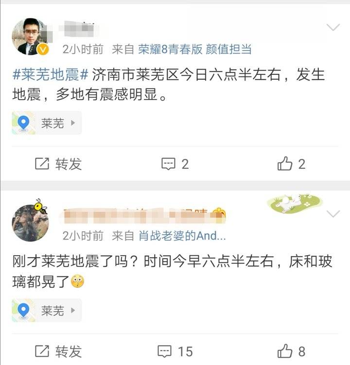 原标题:济南莱芜区发生M1.1级地震,当地居民称震感明显