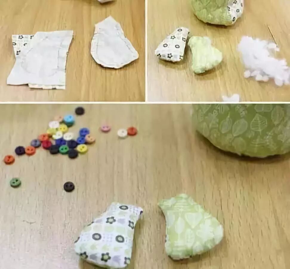 如下图,用不织布剪出一个宠物底座,然后粘贴在布艺宠物的底部,这样就可以把宠物摆平放稳当了。