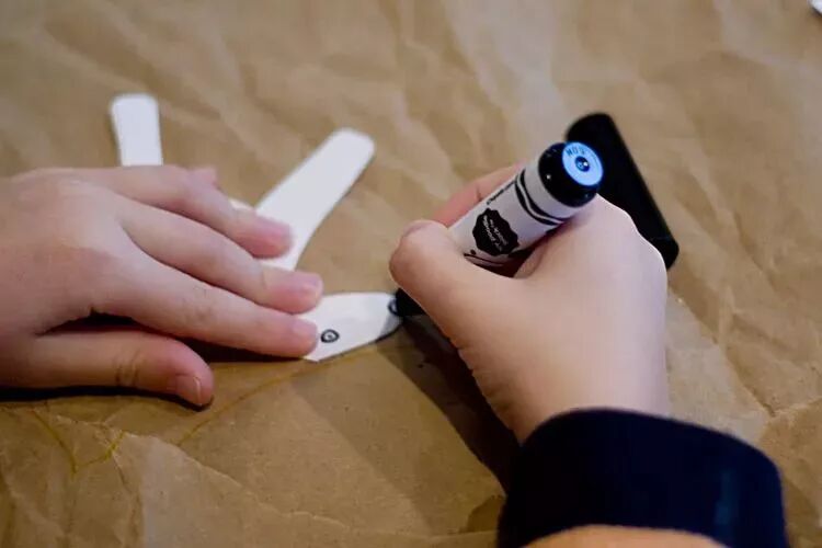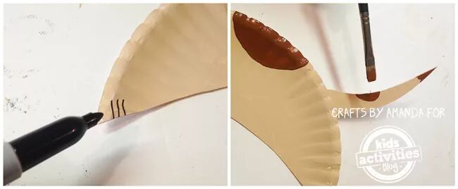 这个手工非常简单,将孩子的小手做出rock状(即中指无名指蜷起),然后沿着手印外缘在对折之后的纸上划线,记得手掌外侧要多画一个斜线,作为尾巴。