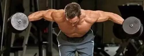 3、两手持铃向两侧举起,直至上臂与背部平行(或略为超过),顶峰收缩1-2秒,然后放下哑铃还原。肩肘腕三关节要伸中有缩,直中有曲,放中有收,发劲含蕴。在整个动作过程中,要集中在目标收缩的肌肉群上不要借力。