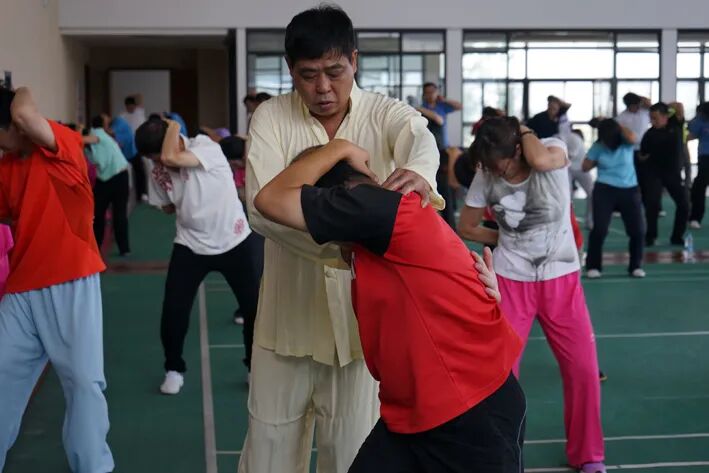 应的予以配合,随着身体的升降,可有效调整人体气机的活动。中医认为,气可归纳为升、降、出、入四种基本运动形式。气机的升降出入对于人体的生命活动至关重要。人体的先天之气、水谷之气以及吸入自然界的清气,都必须经过升降出入才能散布全身,发挥其生理功能。人体的脏腑、经络、形体、官窍的生理活动也必须依靠气的运动才能完成。此节功法三起三落,逐步加大下蹲力度,能充分调动四肢力量。中医理论认为:脾主四肢。通过对四肢的锻炼,可以增强脾脏功能。同时,还能使五脏六腑之气机调和、升其所升、降其所降,从而起到促使心肾相交,肝肺气机通达,脾胃升降稳固的作用。