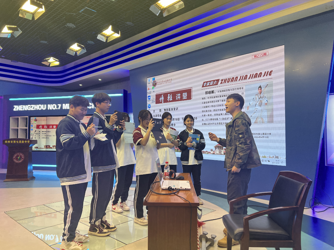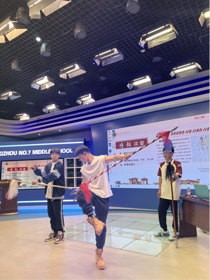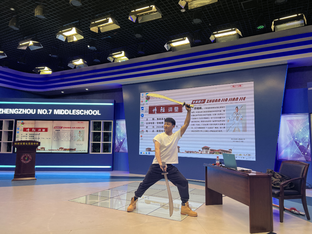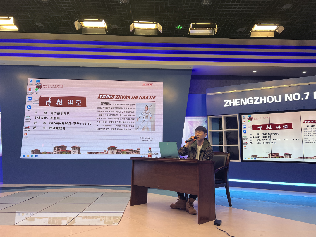 4月18日下午,郑州市第七高级中学第215期博雅讲堂迎来了河南省豫剧院青年团优秀青年演员郭晓鹏老师,为七中学子做了一场生动有趣的戏曲讲座。 郭晓鹏老师讲座现场 郭晓鹏老师现场表演戏曲动作 郭晓鹏,毕业于中国戏曲学院首届豫剧本科班,师从著名表演艺术家丁建英。曾主演《洗浮山》《战冀州》《武松打店》《穆桂英大破天门阵》等20多部剧目,参与过20余场国内外大型演出活动,曾荣获河南省第十届青年演员戏剧大赛一等奖、河南省第八届红梅杯大奖赛金奖、CCTV青春戏苑“一战成功”银奖、第三届全国校园艺术节北京赛区大学组金奖等众多奖项。 古希腊的悲喜剧、印度的梵剧和中国的戏曲,并称为世界上最古老的三大戏剧艺术。中国戏曲的发展历史,源远流长,积淀深厚,名角辈出,流派纷呈。艺术成就显著,影响遍及全世界。 郭晓鹏老师现场教学生戏曲动作 郭晓鹏老师从戏曲的诞生及发展、戏曲行当、戏曲流派、唱念做打等方面,为大家亲自示范,一流的专业技术展示得到了同学们热烈的掌声和欢呼声,大家纷纷举手,积极上台和郭晓鹏老师进行互动,得到了郭晓鹏老师耐心准确的现场指导,台上台下气氛热烈非凡。同学们在聆听欣赏的过程中,模仿学唱了经典豫剧片段《谁说女子不如男》,也通过学做简单的身段动作,体验了戏曲行当的表演特点,在实践中知道了戏剧的相关知识,领略了戏剧表演的魅力所在。讲座结束后,同学们意犹未尽,迟迟不愿离去,向郭晓鹏老师继续探讨相关知识并合影留念。 郭晓鹏老师为学生演唱豫剧名段 郭晓鹏老师与学生合影 中国戏曲作为世界音乐文化的绚丽瑰宝,离不开民族传统音乐文化这篇沃土,作为新时代的青少年,不仅要对祖国的优秀传统文化有认同感和自豪感,更应当肩负起传承保护、继承创新和发扬光大的民族重任!博学雅致、知行合一,郑州市第七高级中学一直在路上。学校也必将培养出更多符合时代发展需要的全面型人才,增强文化自信,不负时代,不负人民! 供 稿 | 郭 松 编 辑 | 校 办 审 核 | 刘 宁 郑州市三全路中段(高中校区) 联系电话:0371-65828916 E-mail:zz7zgzb@163.com 郑州市金水路25号(初中校区) 联系电话:0371-86091766 E-mail:zz7z@163.com 郑州市经八路26号(初中东校区) 联系电话:0371-63934534 E-mail:zz7zdxq@163.com 郑州市二七区郑密路24号 (树人外国语) 联系电话:0371-55372091 E-mail:zzsrwgy@163.com 郑州市丹青路1号(树人外国语南校区) 联系方式:0371-86177072 E-mail:zzswn2023@126.com 郑州市金水区文化路贾鲁河桥头北向东300米桂圆南街(初中部金桂校区) 郭晓鹏联系电话 : 0371-69919899 E-mail:zzjgzx07@163.com 郑州市金水区滨河路与桂圆南街交叉口向南100米路西(高中部树人校区) 联系电话:0371—56088317 E—mail:zzsrzxzp@163.com 郑州市上街区五云路6号(上街校区) 联系电话:0371-68133663 E-mail:zz7zsjxq@163.com![]()