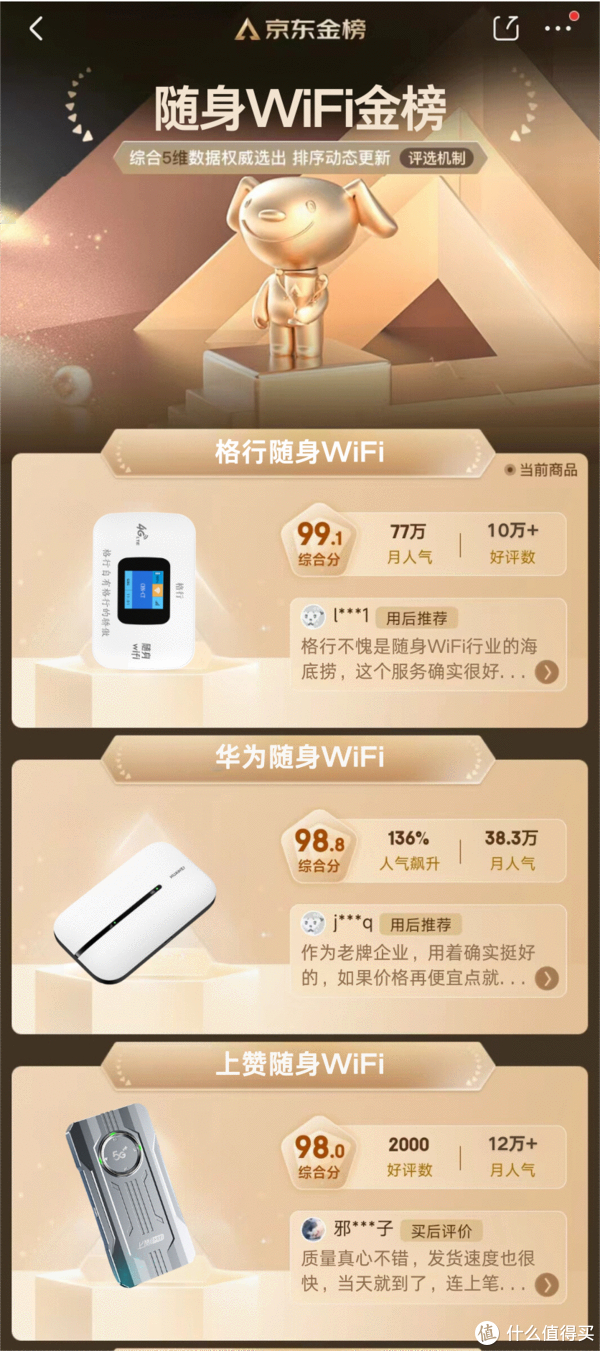 第三名:上赞随身wifi ?综合分98