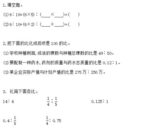 1、化简比:用比的前项除以比的后项求出分数的比值后,在把分数比值改成比。