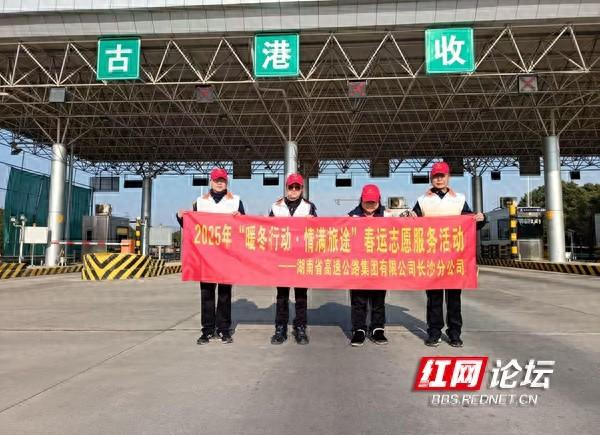 1月14日是 2025 年春运首日,湖南省高速公路集团长沙分公司的工作人员在古港收费站积极开展了 “暖冬行动?情满旅途” 春运志愿服务