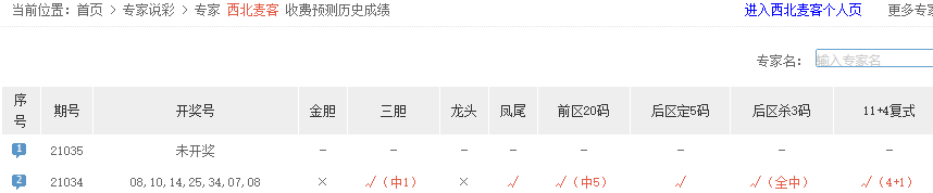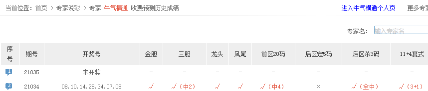 牛气横通、彩色之梦、西贝小妮、彩满楼、看准看稳、李三说彩、数字分析师、心泉、经典预测、吴姐荐号命中4+1。