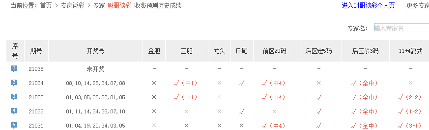 ????财哥谈彩、天天红单、zhangwenlian、火狐狸看彩、老谢说彩、梦歌、喜逢秋起、喜喜、野马318、彩票龙、飞雪绒花、浮萍人生、福神、好看点、李焕英、双色球技术员、外籍数据、中奖大宝典、锦鲤大王、雪中月等专家命中4前区。