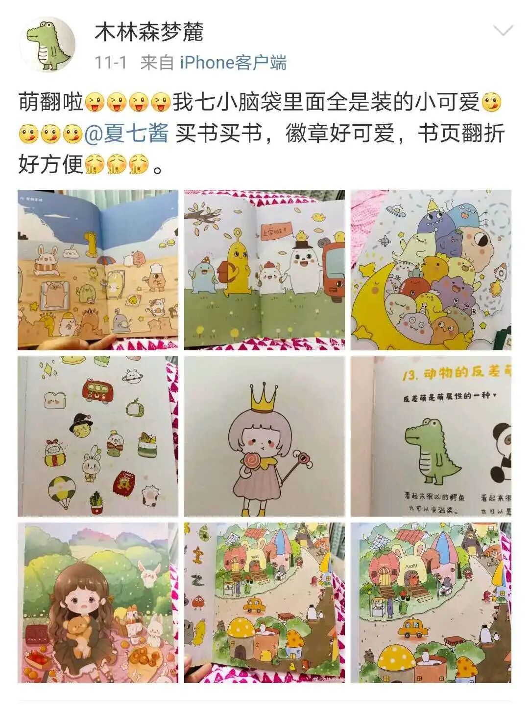 “创意DIY手工制作”携手人民邮电出版社 推出免费赠书活动 本次赠书活动为您带来的是 《萌物星球》 活动参与方式见文末 生活经常告诉你,你该长大了, 梦想却告诉你,你应该保有一颗童心 小编认识一个人,她拥有百万粉丝,学生遍布全国,却依然像个孩子一样,执着地去描绘一个童心的世界。 她就是小编今天想要介绍的画师 治愈系简笔画大佬@夏七酱 夏七酱 治愈系 画师 其实在今天之前,已经有非常多的小可爱认识这位圈中大佬了。 七七的画风非常治愈,就像是一本无字童话书,用最纯净的色彩,画出心中的世界。 她的早期的代表作鲸鱼系列,曾是很多人的头像和壁纸 虽然孤独却对生活充满希望,一如她的绘画之路,曾经孤独、不被理解,却依然执着地画着。 面对争议 她选择成为更强大的人 小时候的七七就非常喜欢画画,但由于家庭条件不太好,一直到毕业工作了才开始接触。 那颗曾经深埋在心底的种子一下子破出了新芽。 被压抑了多年的喜欢,一旦发芽就停不下来。除了吃饭睡觉,她几乎把所有的时间都用在了画画上。 那时候流行微博,她也把画分享上去,渐渐有了不少粉丝。还吸引了很多人跟着她的教程学简笔画。 原本单纯地想要分享自己的绘画心得,却没想会因为画风而被攻击 面对网络上的恶言,原本就有些不自信的七七开始自我怀疑,在极度焦虑的时候,她甚至会从噩梦中惊醒,抱着自己嚎啕大哭。 但挣扎之后,她依然不愿放弃画画,她开始有针对性地学习,渐渐的,她的画风也开始有了改变。 色彩更加成熟,表现的方法更加丰富,对各种绘画形式也运用地更加得心应手……她逐渐从摸索的状态中形成了自己的风格。 有越来越多的人开始关注她,她从一个无名的小画师,成为了一个拥有140W粉丝的简笔画大佬 流言没有击倒她 只让她加速成长为自己想要的样子 而她的画风和教学也吸引来出版社的邀约,她也渐渐找到自信,创作越发大胆,前后出版过2本简笔画教程书,都成为了热销款。 最近她的新崽也刚刚上市,我知道不少手快的小可爱都已经拿到书了~ 她把书当做是对粉丝的献礼,极尽所能地把她的知识和能量传递给身边的人。 酝酿2年,打造萌星宇宙 艰难诞生的献礼之作 为了做到最好,这本新崽的诞生可谓是艰难。 无数次的修改和打磨,才有了这本浓缩了夏七酱这几年全部精华的简笔画教程书—— 《萌物星球 夏七酱的简笔插画小世界》 这本书从设计到最后定稿,前后经历了多次大换血,很多内容都曾被亲妈七七无情修改和替换 她前后更改了40多处案例,大刀阔斧,一点没心疼;但又细节到一个很小很小的案例都要考究许久。 书中有个节日主题,她觉得圣诞老人的案例有些难,又另外画了一组雪人替换,还加入了萌萌的圣诞结案例,装饰圣诞树圣诞花环都很搭。 原本已经定下的案例,脑子灵光一现,又有了新的创意,立马往书里加 别人一个一个调整案例,七七一页一页往里塞创意 她一遍遍琢磨修改,改到设计小姐姐看到消息弹窗都要抖一抖,患上“七七PTSD” 从此,七七有了3个新的名字 夏·无情 绝对不改·七 最后一次·酱 在这一年半的磨改拉锯战里,除了调整书中版块设计和案例,她还在书中埋了非常多的小心思~ 比如她把简笔画设定成一个“萌物星球”。 在这个宇宙中有很多可爱的王国,当我们翻开书就开启了这趟环球旅行 就像爱丽丝的梦境一样,我们也能在简笔画的世界里实现环球旅行! 从手账王国出发,途径美食王国、怪兽之国、动物王国、小人物国、最后回到我们自己的日常生活。 书中每个王国的前页就是国王的肖像画~在设计国王形象的时候,七七还偷偷埋了彩蛋~ 彩蛋① 手账王国·铅笔国王 发现了吗? 铅笔国王的王冠、衣服还有背后装饰的花朵,都是红黄蓝三原色!三种颜色在一起,可以画出世间万物的色彩! 彩蛋② 美食王国·彩椒国王 彩椒国王的头和王冠同样有三种颜色,绿色、黄色、红色都是彩椒一族特有的颜色~ 他把三种颜色作为王冠上装饰的色彩,不仅代表了自己的家族,还象征着美食王国缤纷的美食~ 除了每个国家的国王都埋下了彩蛋,其实书中的案例也藏了不少彩蛋,等着你发现~ 万物皆可萌 凶凶怪兽也可爱! 从美食之国出来,就来到了相邻的怪兽之国~ 光是看到他们的奶萌国王就明白,这个国家的小怪兽都超级可爱! 就算是最凶恶的怪兽在七七笔下的萌物星球里都会变得软糯起来~ 除了他们,还有动物王国的和小人物国的的众多萌星居民,在这趟旅行中你一定会认识很多萌萌的小伙伴~ 对啦!开启萌星之旅的密匙就是这本色彩清新软软糯糯的《萌物星球》?? 星球里的居民们都在等你的到来~ 迷你口袋 把回忆塞进萌萌的立体书里 除了能开启萌新之旅的《萌物星球》密匙,随书还赠送了一套小萌星的材料包,巴掌大的迷你书,里面却可以塞满各种甜甜的回忆~ 虽然看起来小小的一只,但却是由七七亲手设计,多次测试、打样。 为了实现模切,光是勾边就勾了十几遍,只为了大家在制作立体书的时候能够更轻松地取出需要的部分~ 为了方便大家能够轻松折叠,还特意增加了折叠的压痕~ 就连制作过程七七也准备了视频教程,每个步骤都讲得非常清晰! 右边大萌星,旁边小萌星,搭配书中的书签,迷你立体书就完成了! 当做书签,夹在书里面,《萌物星球》立马成为书柜里最亮眼的那颗星! 除此之外,还可以利用书上的简笔画教程,自己绘制各