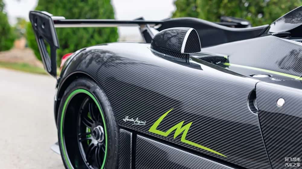 帕加尼Zonda LM外观采用裸露的碳纤维材质,并配以绿色装饰,展现了帕加尼的完美面板拼接工艺。车身遍布Cinque、Tricolore和Zonda R特征,具体包括Cinque的侧裙、前扰流板、前轮拱和后扰流,Cinque Roadster进气口、19英寸Zonda R轮毂、Huayra后视镜、Tricolore后侧进气口、760规格的后鳍片、Zonda R后刹车灯、Zonda Revolución的尾翼以及Tricolore的排气管。