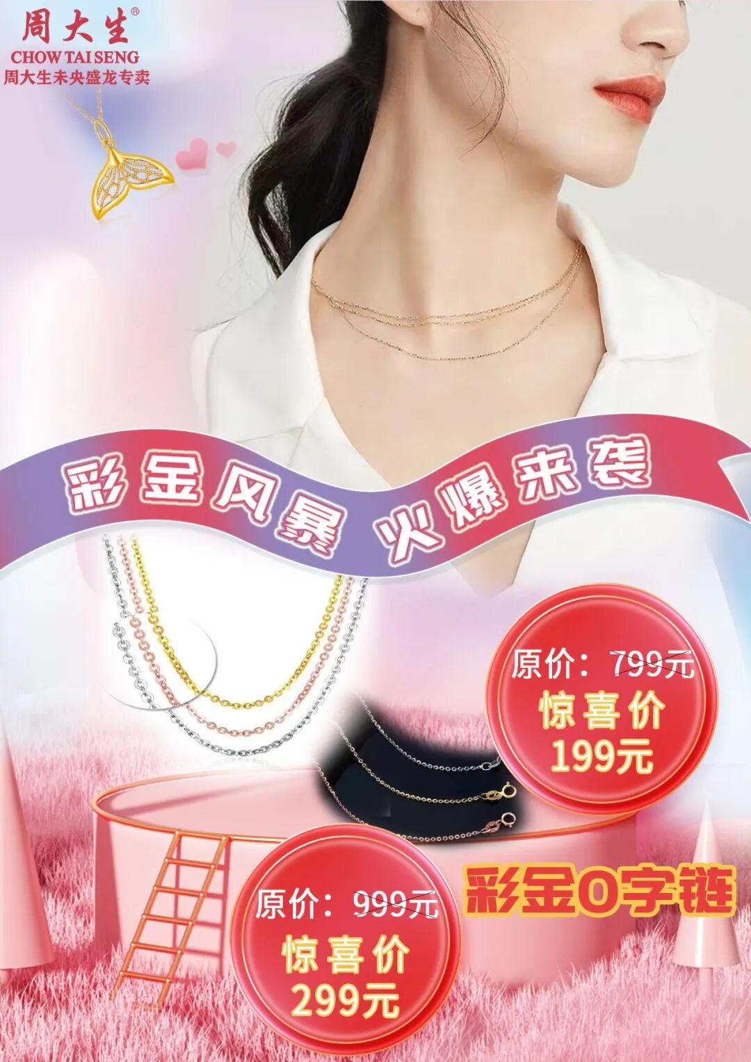 —— 火爆来袭 —— 盛夏特惠 |不容错过 缤纷夏日 和风缱绻 花开依旧 五月人间 多彩盛夏 华丽开启 所有美好 非你莫属 彩金风暴倾情奉献, 全城盛惠只等您来~ ● 彩金风暴 火爆来袭 ● 彩金O字链:799元 惊爆价:199 元 ● 彩金风暴 火爆来袭 ● 彩金O字链:999元 惊爆价:299 元 更多活动详情 请至门店 收获惊喜美丽! 因爱而美 为爱而生 周大生盛龙广场店 扫一扫,体验 周大生智慧云店