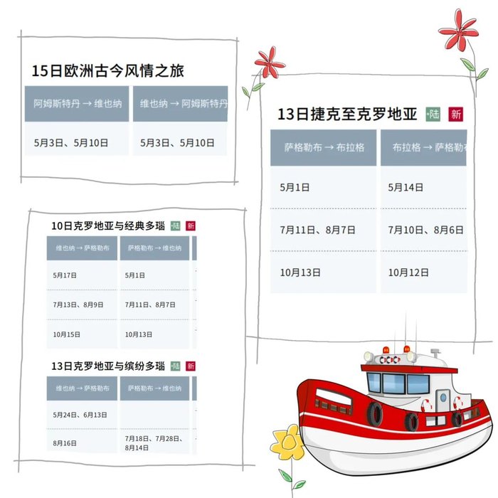 更多2025欧洲内河游轮团期、价格政策