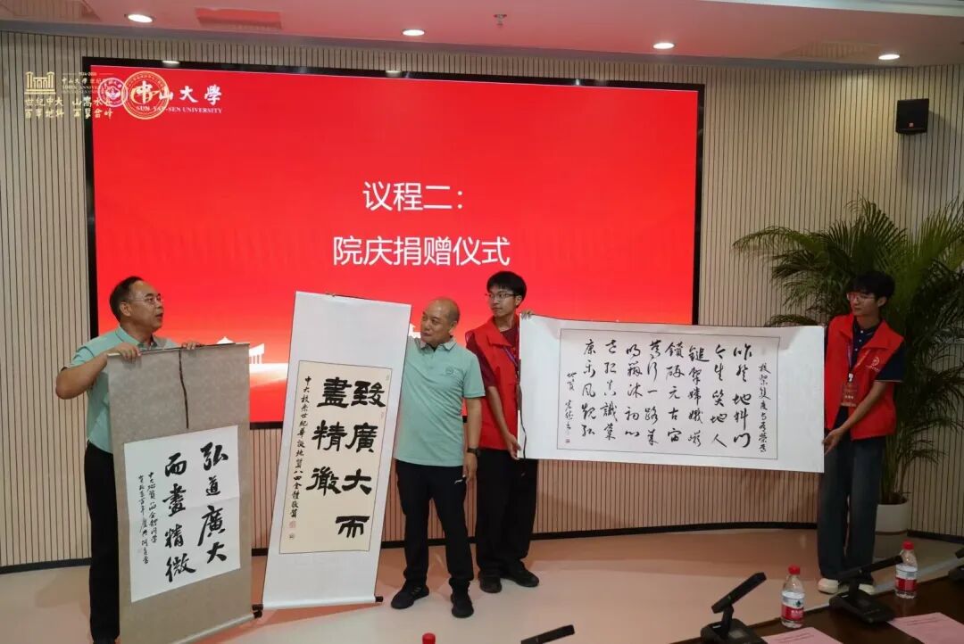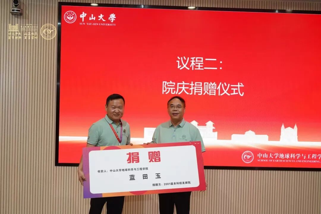【编者按】世纪中大,山高水长。百年地科,再攀高峰。为庆祝中山大学地球科学(地质学)学科创建100周年,我院于2024年11月1-4日举办系列庆祝活动。本期我们分享11月2日举办的“中山大学地球科学与工程学院校友会理事换届大会暨院庆捐赠仪式”。 百年地科,薪火相传。11月2日上午,中山大学地球科学与工程学院校友会理事会换届大会暨院庆捐赠仪式在海琴四号楼A319博学堂顺利召开。中山大学教育发展与校友事务办公室主任兼校友总会黄瑞敏秘书长、学院院长王岳军、党委书记孔晓慧、党委副书记徐永怡以及校友理事共140余人出席大会。本仪式由学院党委书记孔晓慧主持。 学院先在一楼举行了“锦绣河山”方解石晶体岩标本揭幕仪式。该方解石由1975级本科校友谢佑才捐赠,这不仅是自然界的瑰宝,也承载着校友对母校的深情厚谊和美好祝愿。谢佑才校友出席了仪式并致辞,真挚表达了对母校母院的感激之情以及世纪华诞的祝福! 谢佑才校友在揭幕仪式上发言 随后的院庆捐赠仪式同样动人心弦。多位校友代表纷纷上台,捐赠了各自精心准备的礼物,饱含情意地讲述了一个个动人的捐赠故事,为学院的发展贡献自己的力量。 捐赠“锦绣河山”方解石 84级全体本科校友捐赠了书画作品 俞炯光(地质系1986级本科校友) 代表1986级本科校友班级捐赠 “地学赋”坭兴陶花瓶 郝凯(2001级本科校友)捐赠蓝田玉 此外,殷富华先生及其夫人捐赠了钙质结核、崖柏、沉香木、字画,史建国(1992级本科校友)捐赠20万元人民币,罗骥(2001级本科校友)捐赠10万元人民币。除了现场捐赠以外,学院师生、校友和社会各界热心人士通过捐赠的方式,支持学院发展建设,表达了对学院的祝福。 随后,学院举办校友会理事会换届大会,全体参会人员共同奏唱校歌,激昂的旋律中洋溢着对母校的深情厚谊。 学校校友总会黄瑞敏秘书长发表了热情洋溢的致辞,对校友们的到来表示热烈欢迎,高度评价了校友对母校母院沉甸甸的心意,并对学院校友工作的发展寄予厚望,呼吁校友常回家看看,实现校友与母校的双向奔赴。 徐永怡副书记向大会报告了学院校友会理事会换届筹备情况。学校校友总会黄瑞敏秘书长宣读了学校对于学院校友会换届工作的批复意见,为新一届校友会理事会的成立奠定了坚实基础。 大会对新一届学院校友会理事会名单进行了表决,并顺利通过了相关决议。1982级校友黄伟强当选为会长;1975级校友郑卓等23人当选为副会长;1972级校友黄喜等65人当选为常务理事;1972级校友岑况等203人当选为理事。 王岳军院长深情回顾了学院百年来的发展历程,感谢校友们的支持与贡献,并对学院校友会理事会的未来规划进行了展望。他鼓励校友多回母校走一走、看一看,给学院带来新的力量,并承诺将恪尽职守,服务学院。句句肺腑之言,赢得了在场参会人员的热烈掌声。 活动接近尾声,全体参会人员共同奏唱校友之歌,用歌声表达了对母校母院的热爱与祝福,共度这一难忘的时刻。 本次学院校友会理事会换届大会暨院庆捐赠仪式的成功举办,离不开学校及各级部门、特别是师生校友和社会贤达给予的广泛关心与热情资助。此次大会不仅加强了校友之间的联系,更为学院未来的发展注入了新的活力。 此前,为更好地筹备校友会理事会换届会议及院庆活动,学院于9月29日举办了校友会理事会换届筹备会议,我院1975级校友郑卓、谢佑才,1976级校友陈国能等10余位校友代表和学院党政领导及教职工代表近30人参与了本次会议。会议围绕学院发展建设情况、校友会理事会换届工作以及校友会未来发展等方面展开讨论,取得了丰硕成果,不仅展现了校友们对母校发展的关心和支持,也为校友会的有序运作奠定了良好基础。 文字:赵芙蓉 编辑:吴春鑫 初审:梁秋芸 黄荣 审核:徐永怡 审核发布:孔晓慧