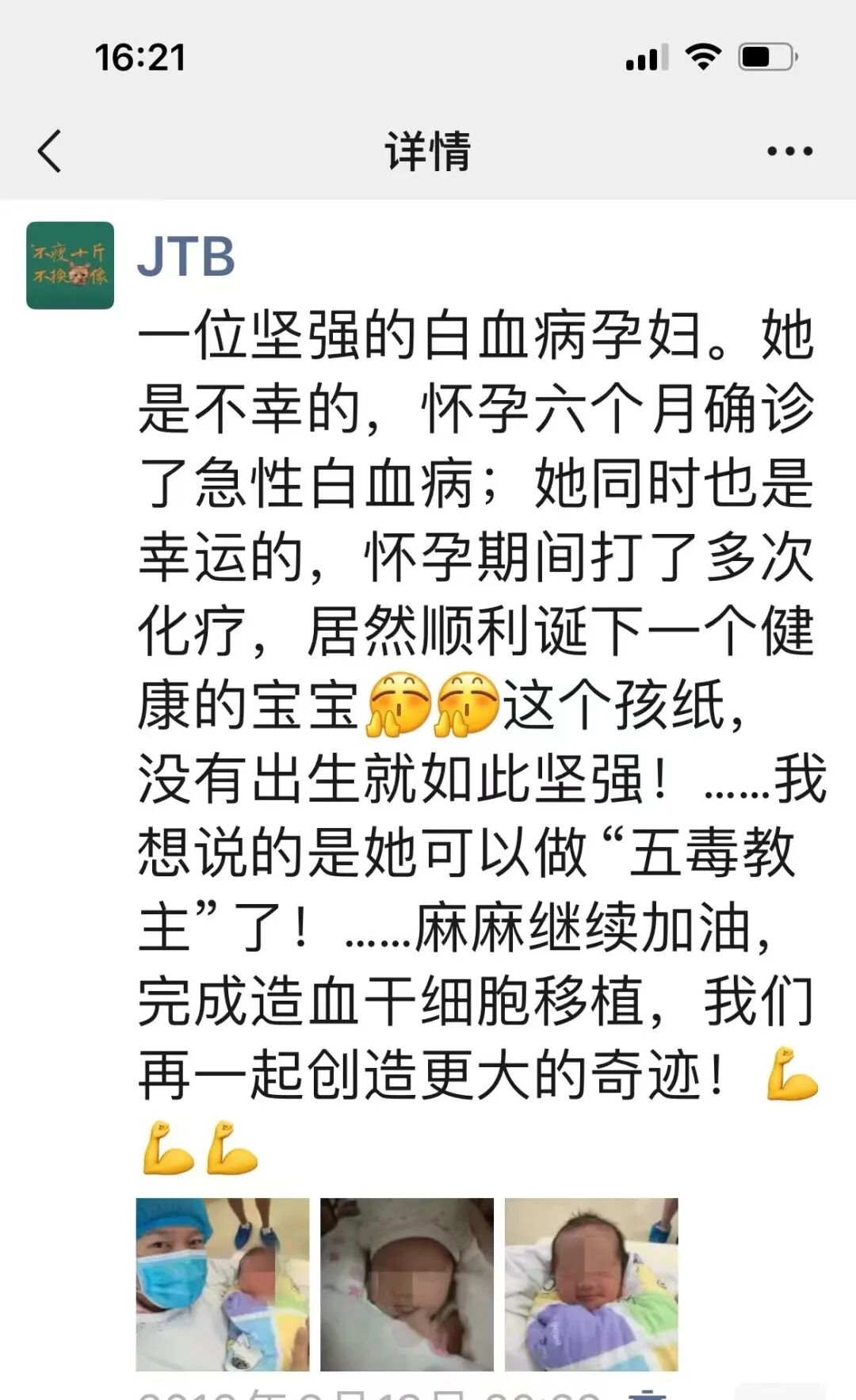 儿童节的故事 白血病 与 宝妈入院第一天,宝爸就收到了病危通知单。牙龈红肿出血,皮肤底下布满出血点,宝妈毫不犹豫的选择不化疗--她要自己铤而走险,争取更多让孩子活下来的机会。 而宝爸,却陷入了两难的境地:化疗,可能会让孩子受伤害;但是不马上启动化疗,宝妈随时可能死于出血。 急性髓系白血病没有给宝爸太多思考的时间,先要保住妻子的命,才有希望保住孩子。 "上化疗!我们做好了接受一切后果的准备,一切,托付给医生了。" (当时的电视节目采访画面) 一个疗程,平稳过。 再一个疗程,没问题。 最后一个疗程,宝贝坚持住! 当时还是主治医师的李颖回想起当时那段“惊心动魄”的化疗经历,仍然印象深刻: “急性髓系白血病异常凶险,一旦出现败血症、颅内出血,这些都是致命的。但是如果我不给她打化疗,任由白血病发展,最后肯定大人没了,小孩也保不住。我先得要想方设法先保住她妈妈,孩子才有一线生机。” 打起十二分的精神,方方面面牢牢盯住。三个疗程的化疗,宝贝每一次都有惊无险,稳稳过关,最后健健康康的足月出生。 “过程平稳,化疗效果好,足月出生,平安健康-- 这不仅仅是一个最好的结果, 这真的是一个奇迹!” 看着他们一家人幸福生活的照片,副教授李颖,眼神里有光。 产后不久,血液内科蒋铁斌教授接棒宝妈的造血干细胞移植。造血干细胞移植是患者治愈急性白血病最有效的手段。 宝妈的弟弟捐赠造血干细胞进行移植,移植仓里的化疗和造血重建过程平稳,出仓之后顺利停用免疫抑制药物,没有出现明显的排异反应。移植术后在血液内科门诊随访了三年,宝妈就开始重新进入社会工作了。目前, 宝妈已经实现了无病生存, 宝贝已经上小学了, 而宝爸…… 心宽体胖,更加发福了?????? (母女俩hen幸福的画面) 从16年5月21入院到24年5月整整8年时间过去了,一路走来真的很感谢湘雅三医院血液科的蒋教授、李颖医生、以及产科的米春梅教授,还有其他所有帮助过我们的医护人员。 当时面对生命中这个大波折时,很无助。但是脑袋里一直有一个信念,孩子既然已经来到我肚子里她就是一条生命,无论结果如何我们都不该去剥夺她体验这个世界的权利。 经历这一次人生坎坷,关于孩子的养育教育,我跟孩子她爸一致觉得只要她健康快乐就好,也希望能多陪伴她好好感受生活的美好,享受这份平凡的快乐。 医生们 · 作者:刘艳 编辑:刘艳 责编:阮春红 审核:李昕 出品:湘雅三医院血液内科 关注我们 湘雅三血液科