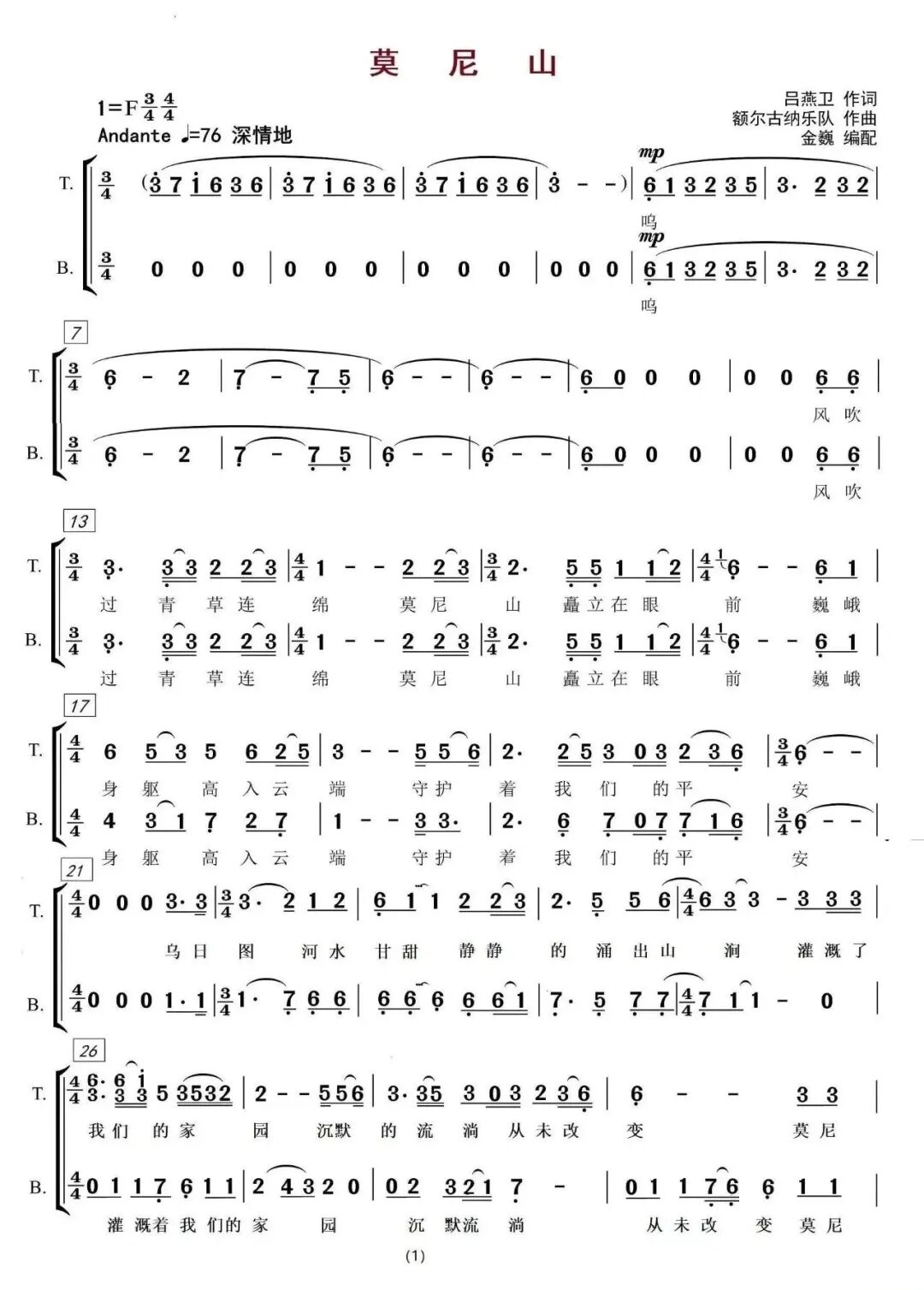 |||||||| 莫尼山 |||||||| 《莫尼山》是一首以蒙古族家乡情怀为主题的草原二声部合唱歌曲,由额尔古纳乐队演绎,歌词描绘了莫尼山的壮丽景色与对家乡的深切情感。歌曲融合了悠扬的民族旋律与马头琴、笛子等传统乐器,通过和谐的双声部合唱,展现了草原的辽阔与自由,以及对家乡的无限眷恋,是一首充满民族特色的经典之作。 曲谱分享 左右滑动查看完整曲谱 视频|网络 曲谱|网络 免责声明 “音乐大师学院”中文官方微信公众平台的部分内容来源于网络,旨在传递更多音乐艺术相关信息,仅供音乐爱好者学习、交流、研究使用,版权归原作者所有。如引用内容涉及版权等问题,请及时联系我们,以便我们予以改正。 音乐大师学院是一个涉及合唱、声乐、键盘(钢琴、手风琴)、弦乐、管乐、打击乐、音乐舞蹈等领域的专业教学、研讨、展示的在线音乐教育平台。 致力于整合世界范围内的音乐教育专家,向一线音乐教育工作者、广大青少年音乐爱好者传授音乐教育先进理念、体系、方法,助力一线音乐教育工作者在专业水平方面的进一步提升,为热爱音乐的青少年提供珍贵的学习机会,为音乐艺术团体提供专业的展示平台。 音乐大师学院|音乐道路上的领路人! 国际音乐大师入驻,海量课程资源助力快速提升! ■■■ 音乐大师学院 手机号|138-1178-4824 长按扫描二维码 开启音乐大师学院的线上学习之旅 点击名片 关注我们 小学音乐体验式合唱教学中的问题与对策 合唱教学:追求“和”的效应 视唱练耳在少儿合唱训练中的应用 曲谱分享|男声四重唱《故乡的云》 合唱训练中的音准把握策略 童声合唱的训练要点 曲谱分享|二声部合唱《奉献》 起拍和收拍技巧在合唱指挥中的应用 “肢体辅助式”发声练习 在合唱训练中的作用 合唱艺术中的音色融合与表现力研究 合唱指挥技巧对音乐表现的影响 曲谱分享|童声合唱《大山的小姑娘》(本曲适合童声、女声合唱团) 合唱教学中的基础训练方法 曲谱分享|混声合唱《春风十万里》![]()