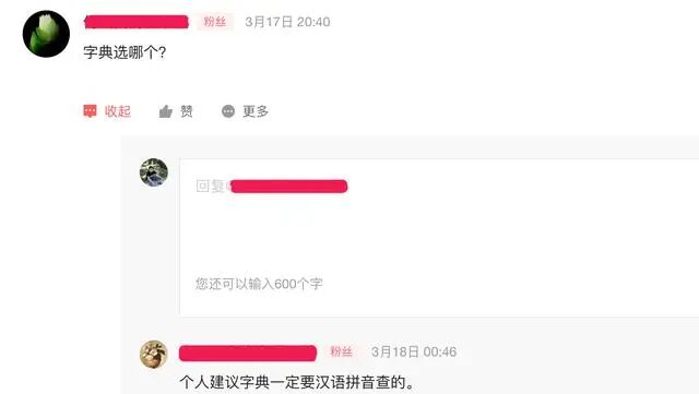 前几天,发了一条关于篆刻的内容,在准备的资料中提到字典,于是,有朋友留言提问:字典选哪个?本来打算回复一下,打开窗口,却觉得需要说的内容太多,简单几句话说不清楚,如图: