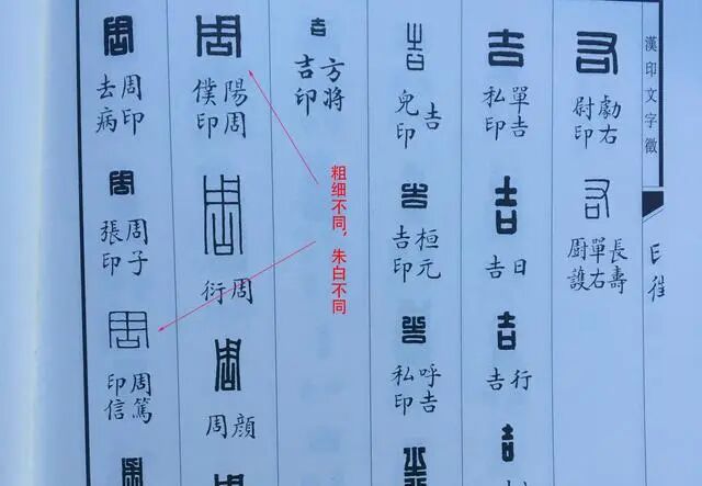 使用此类字典,有一个小问题,就是字典中收集的文字的笔画粗细有朱、白文之分(朱、白文缪篆有时有篆法上的不同,要注意),在使用这些文字时要注意。