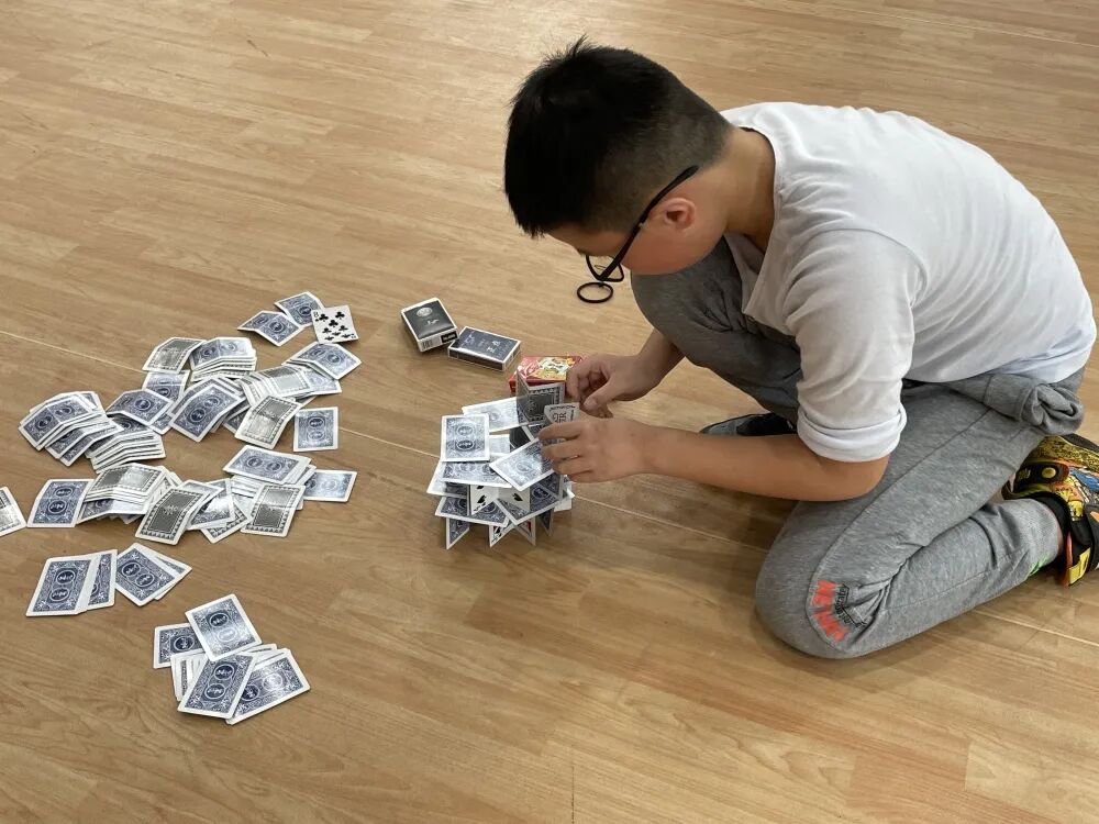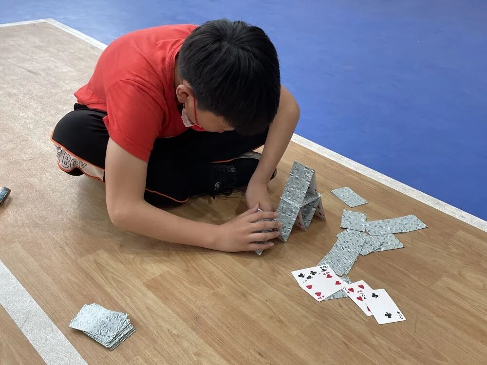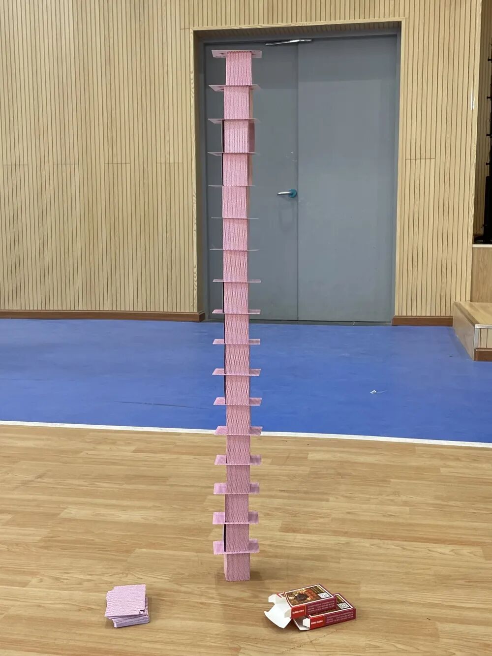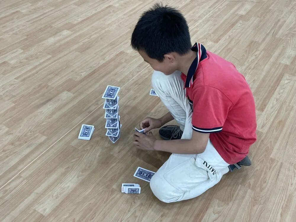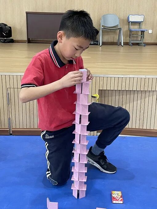 巧手建高塔 探究创无限 暖春四月,硕士小学第五届校园科技节又在孩子们的期待里如期开展。在此次科技节里,五年级同学的活动项目是“纸牌搭高”。不能用胶水等任何辅助工具,只能用折、卷等方式,在限定的十分钟时间里,将轻飘飘的纸牌搭成兼具稳定性与高度的塔。面对这样的难题,五年级的二十位“建筑能手”自信地开始了他们的挑战。 孩子们像科学家一样思考,比赛一开始,选手们就使出了自己的“独门绝学”,有的用折叠的方式构建四边形框架,有的采取了三角形的结构,有的将纸牌折痕相对,搭建了五边形的底座……真可谓是“八仙过海,各显神通”。 五(4)班的陈常宇同学在搭建中遥遥领先,没过多久就率先搭出了一座齐腰的高塔,吸引了周围同学和老师们的目光。五(2)班的洪天麒同学也不甘示弱,一边搭建自己的高塔,一边观察自己的对手。两位同学在场中暗自较劲,誓要分个高下。陈常宇同学在搭建了16层纸牌之后,为求稳妥,停下了自己的动作。洪天麒同学抓住了这个机会,在数清了对手的层数之后,在最后时间搭上了第17层,最终以接近1米的总高度,获得了本次纸牌搭高的第一名,陈常宇同学因微弱的差距位列第二。 五(2)班的孙傲同学搭建出了此次比赛中最稳固的塔。他没有采取两张合围搭出四边形为一层的方式,而是将五张纸牌折痕处相对,每层五张牌,大大增加了塔的底面积,这就使得他的塔稳如泰山,不必担心中途倾塌。孙傲同学的方式有利也有弊,每层更多的牌量使他无法快速地增加塔的高度,最终以84厘米的成绩获得了第三名。 在比赛的过程中,不时能看到有些同学原本已经搭出了很高的小塔,但最终都因种种原因,高塔倾倒,只能从头再来。但令人欣慰的是,当面对自己辛辛苦苦搭建的成果轰然倒塌时,同学们虽然有些沮丧,却没有一丝放弃,只是叹一口气便立刻开始新的挑战。这样执着坚韧的精神,令观赛的评委老师们都感到动容。 富有趣味的纸牌搭高活动,对于硕小学子极具吸引力和挑战性,他们开动脑筋,利用纸牌来探索建筑的稳定性,这一活动极大地培养了学生们的观察能力、思维能力、实践能力和创新能力,促进了他们科学素养的全面提升。 文稿|周思敏 摄影|周思敏 编辑|江雨婷 责审|俞晓颖![]()