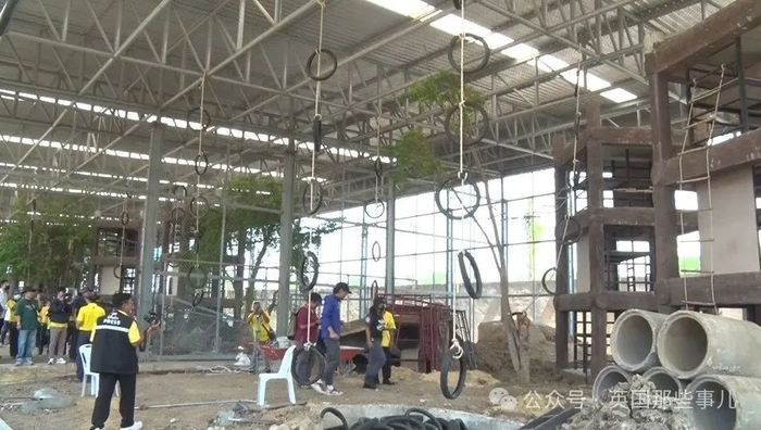 (猴子收容所里安置了许多供猴子攀爬的设备)