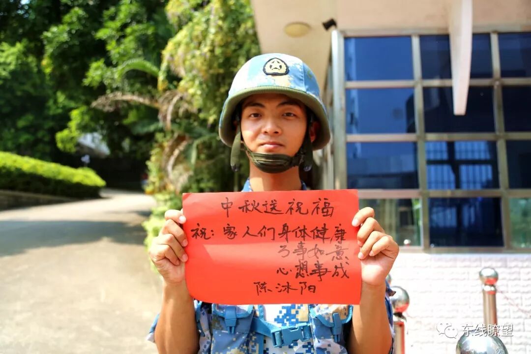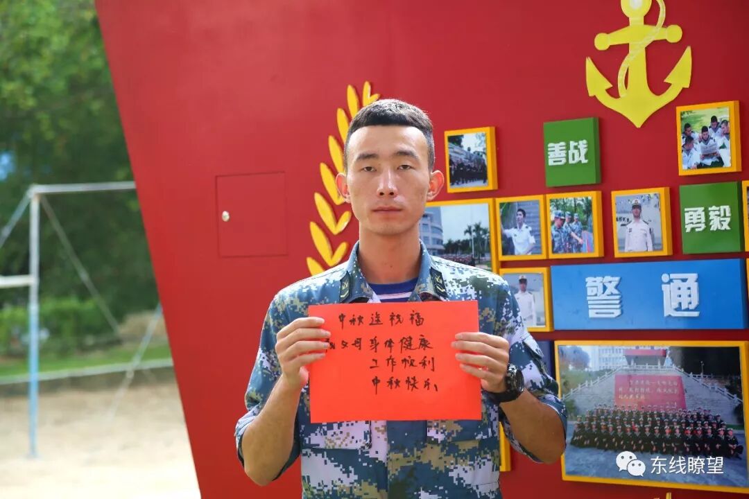 文、图 | 张元虎、廖乙歌、王莉莉、裘统竣、吴 磊、钟宇杭、王盟 肩负卫国重担,难有闲时归乡 亦为中华儿女,自当献身国防 惟愿父母安好,勿将孩儿牵挂 适逢中秋 多少华夏儿女戍卫边疆 难掩思乡心绪 依旧紧握钢枪 愿慰父母思念 遥寄军营牵挂 在此,东部战区海军航空兵某师 将坚守在各个岗位上官兵的祝福 献给各位军属,祝大家中秋快乐 ▲地面模拟。 ▲节日祝福。 ▲理论考核。 ▲图上作业。 ▲节日祝福。 撰写稿子、上报文件、处理基层大事小事、承办各类政工会议……这些都是每名政工干部在成长道路上的必备本领。我的爸爸是一名退役军人,从小受他的影响,我也特别喜欢军队。今天,我站在政工战位上,穿上这一身浪花白,向自己的理想,又走近了一些。今年,是我在军营过的首个中秋节,想念爸爸妈妈是真,爱国爱岗亦是真。虽然无法和家人团聚一堂,但是我手握笔杆坚守在政工岗位上,保卫着人民安居乐业,我想大声地说,我很自豪。 “喂,你好,这里是……喂,你好,请问是哪位……”这难道是话务兵吗?NO,NO,NO,我只是一名机务中队的小值日。从每天的清晨到夜晚,我一直值守在中队楼前,我的职责就是为连队服务,哪里需要,哪里就有我的身影。入伍一年多以来,这还是我在部队过的第一个中秋节!哪有人不想家啊,但毕竟穿着迷彩服,就要担负这份责任,虽然我的岗位小,但是我的责任大啊。月圆中秋夜,祝大家节日快乐。不说了,电话又响了,喂…… 对大多数人来说,中秋节是团聚的日子,然而对于我们来说中秋节代表的是忠诚与坚守。在万家团圆的时刻,我们依然坚守在自己的哨位上,虽然皓月当空,我却丝毫不敢抬头去仰望,怕止不住对家人的思念,使自己懈怠。时刻保持警戒,为的就是守一方安宁,让千万家能过一个美好的中秋月圆夜。 爸爸妈,儿子在这一切都好,切勿挂念。过几天就是中秋节了,想念家里过节时妈妈烧的满桌可口饭菜,想念一家人有说有笑吃饭的样子,可惜今年的中秋儿子不能和你们一起过了,儿子现在是一名人民解放军,手握钢枪,肩扛责任。不能和你们团聚,虽然有些遗憾,但能护卫祖国万家团圆,我觉得无比光荣。 ——爱你们的儿子罗林书 爸妈,这一年多来,我成长了不少。从刚开始那个稚嫩青涩的地方青年到如今身着戎装的合格军人,从刚开始的不适应与抱怨到现在的为军人感到无比荣光,爸妈,儿子长大了。又是一年中秋佳节,今年不能和你们一起过节了,有些难过,不过爸妈不用担心,我有许多战友陪着呢,愿你们一切都好。 ——某场站战士赵鹏 时光荏苒,转瞬即逝,一眨眼便是三年多了,这是我离家之后的第三个中秋节。虽无家人的陪伴,但有战友的温暖,这个中秋节我不孤单。流过的血,受过的痛,只有战友最懂,他们是老师,我们相互指导;他们是挚友,我们相互关照;他们是对手,我们在竞争中共同进步。爸妈,你们总说我身边朋友少,现在我的朋友可是超过你们喽,最后祝你们中秋节快乐! ——某场站战士杨旭攀 “但使龙城飞将在,不教胡马度阴山。” 保卫国家安全,捍卫祖国权益 是每一名军人无可推脱的责任 守卫人们的幸福是军人的使命 时刻准备打仗是军人的职责 海军航空兵,时刻准备着 明月团栾日,阖家欢聚时 今天是农历八月十五——中秋节 三秋桂子,十里荷花 中秋节,一年中最有诗情画意的时节 中秋节,一年中战友们最最思念家人的时节 中秋节,一份来自东部战区海军 某护卫舰支队官兵的中秋祝福 请您收下—— 中秋节,一个本是万家团圆相聚的时刻 但在军营,团员却成为战友们的一个梦想 战友们用一家不圆换来万家团圆 今夜,他们还是在祖国海疆巡航 今夜,他们还是在哨所站岗执勤 今夜,他们也会因为想家而悄悄落泪 爸妈,中秋快乐!我无论身在何方,思念故乡时我都会望向家的方向;我无论走到何处,浓浓的故乡情从未忘却。 爸妈,中秋快乐!从小我就喜欢花木兰那一身正气报效国家,如今我经历4年军校生活的锤炼,已成长为一名合格的军人。我虽远离故乡,但想家念家之情从未改变。 爸妈,中秋快乐!思乡之情到中秋节格外浓烈,但要人们安享这岁月静好、要让相爱之人爱其所爱,总是要有人忍受孤独,承受别离之苦,总是要有人远离故乡万里,守其岁月安宁。 爸妈,中秋快乐!未曾穿过这身军装,你不会明白保家卫国的含义;未曾手握寒冷的钢枪,你不会理解使命重于生命的意义,儿子在哨位上祝爸妈中秋快乐。 陪伴是最长情的告白,陪伴也是最甜蜜的幸福 对军人而言,陪伴可能却是最大的奢求 我们不知有多久没陪伴在妻子、孩子身边 我们也不知几个中秋没有与家人团聚 但军嫂用柔弱的肩膀独自挑起家庭的重担 军嫂用无私的爱呵护“小家”的温暖! 刘亮,福建省福鼎市人,是该支队保障部汽车队战士,今年已是当兵第13个年头了。“在外当兵这么多年,说中秋节不想家那是假的,我也想能与家人团圆,吃一顿团圆饭,但我是一名军人,为祖国站好岗、尽好责,是我的义务!”言罢,他又出车执行任务了。言语虽然简单,但道出他对家人的思念;言语虽然质朴,但表达出他对家人亲切的祝福。 范寿海,福建省龙岩市人,是该支队保障部汽车队四班班长,今年已是当兵第11个年头了。“每逢佳节倍思亲,快到中秋节了他别挂念父母,想念妻子与孩子。当兵11个年头,几乎每次都是老婆带着自家做的月饼、鱼干啥的来部队过中秋节,祝家人身体康