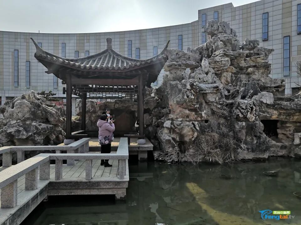 从通道走进馆内,可以看到两侧的假山绮丽多姿,一边的假山处还有凉亭供来来往往的人们小坐休息,有不少市民前去拍照打卡。