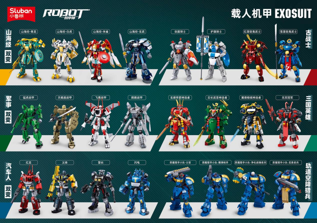 据笔者了解,小鲁班目前已经开发了山海经、军事、汽车人、古战士、三国英雄、轨道空降猎兵等不同系列、主题的20余款小机甲产品。接下来,该品牌还将推出10余款新品,构建小鲁班载人机甲的宇宙大军,也为消费者提供了更多的选择。