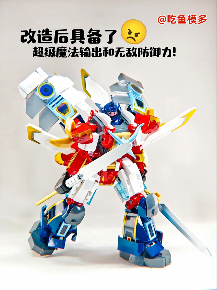 虽然机甲积木是在今年呈现了明显的潮流,但笔者留意到国产积木机甲化可以追溯到2021年。这一年底,积木品牌小鲁班与网易游戏《机动都市阿尔法》达成合作,推出了亚瑟、热钢、焦糖重炮等角色机甲。其中,热钢还被模型玩家进行改装,并给出了“模型属性很强”“表面做到去颗粒化”等极高的评价。
