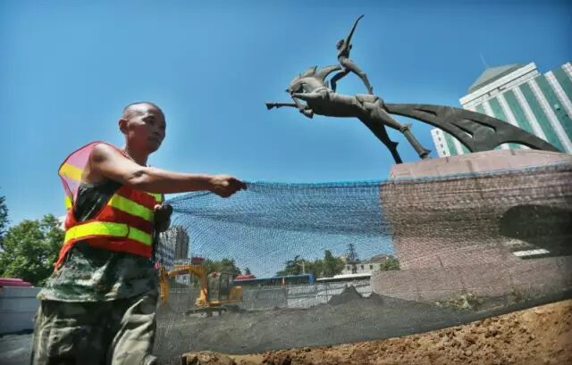 大铜马“大铜马要搬家了?” 这两天微信朋友圈里,不少人晒出高高的挡板围住大铜马环岛,大型挖掘机正在挡板内施工的照片。