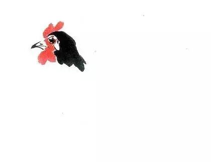 用大兰竹笔蘸浓墨画出鸡的嘴,眼和耳。见下图:
