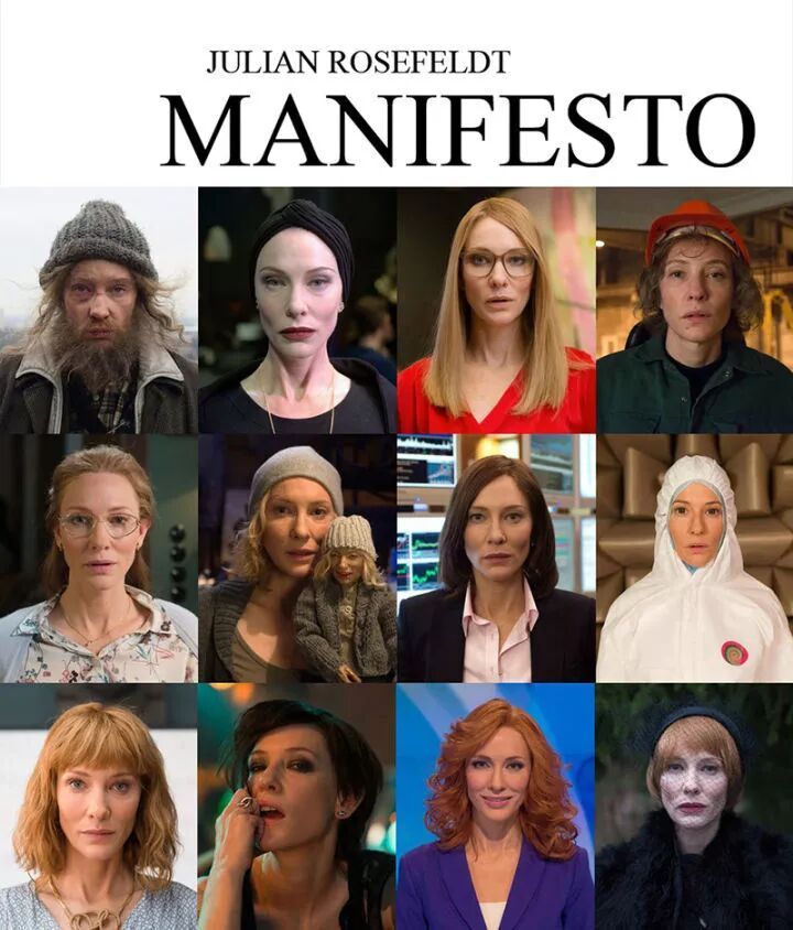 在圣丹斯的开幕影片《宣言》中,凯特又一人扮演13个角色,男女老少,代言”一段段关于艺术的“宣言”。