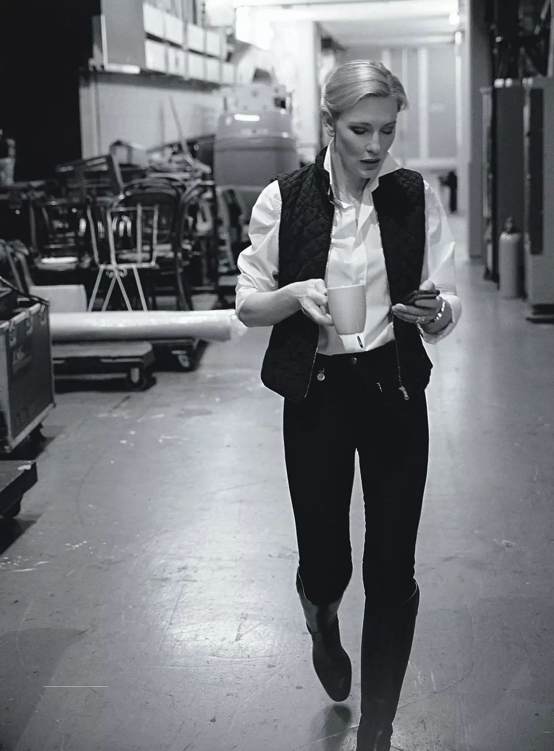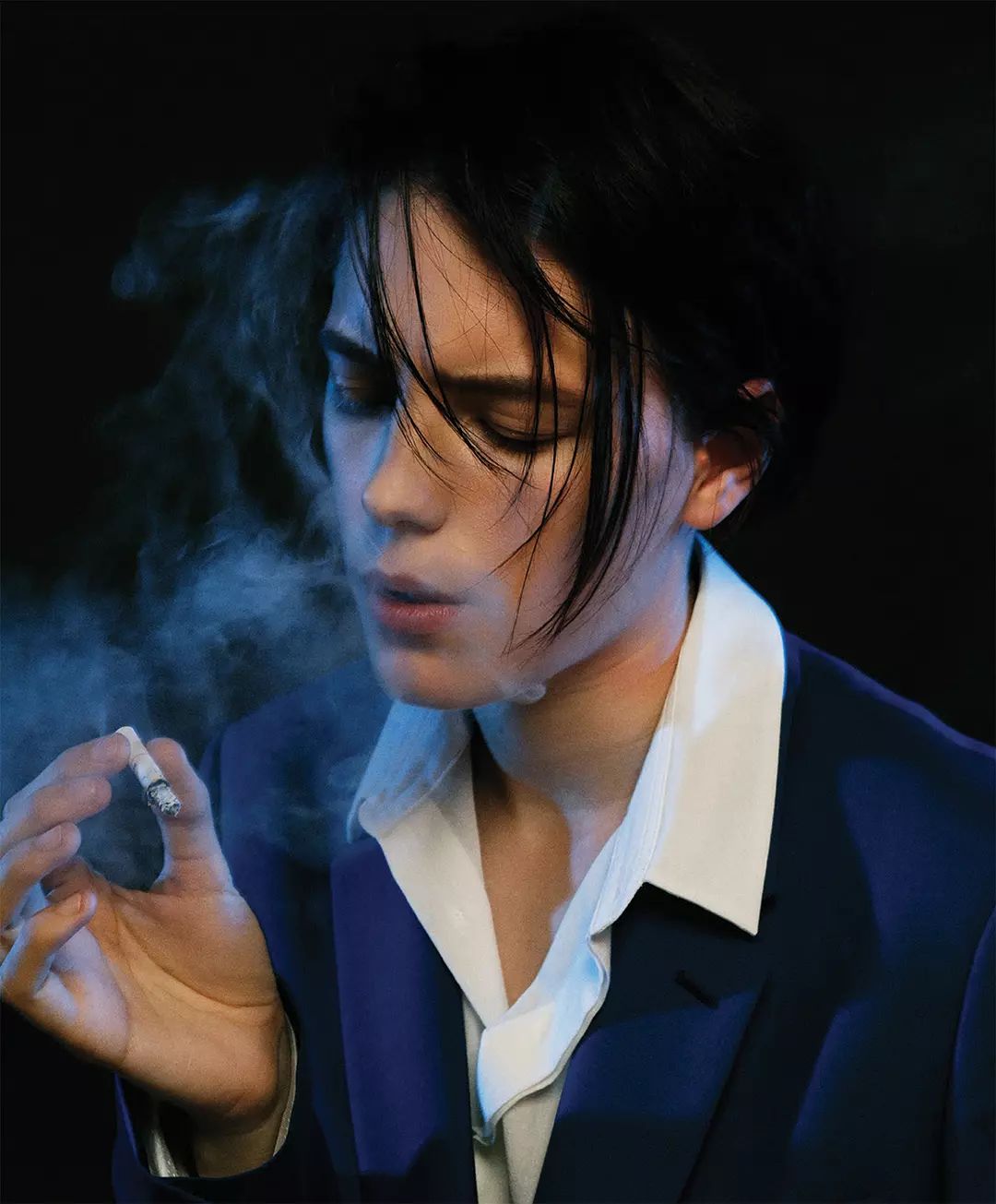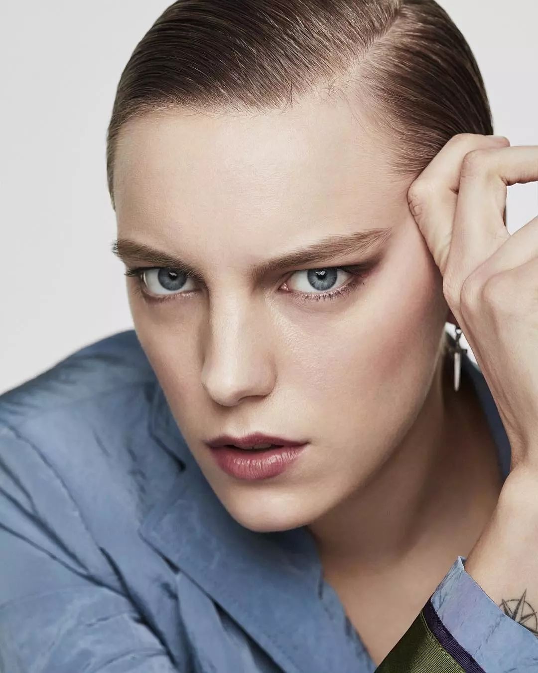 比起男孩子气,凯特更多的是攻气,方正额,高眉骨,颧骨突出,刘海一收,气场一下子就从芸芸众生里拔个大高个。