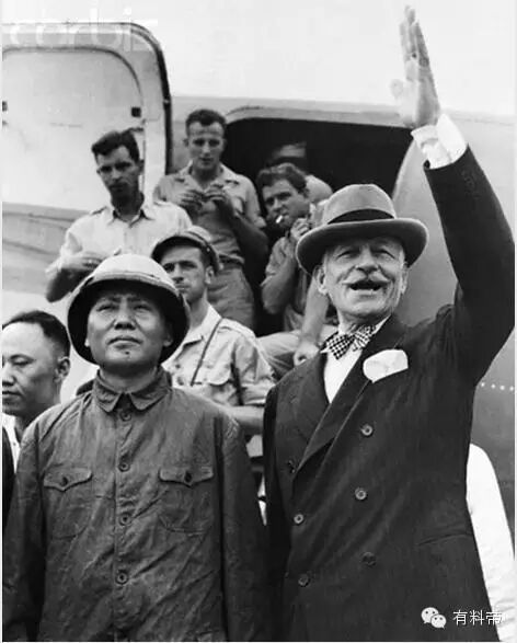 1945年,美国驻华大使赫尔利陪同毛泽东到重庆。